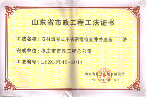 “創新路面結構層范圍內檢查井的施工工藝”QC小組榮獲2015年度全省市政工程建設質量管理小組一等獎