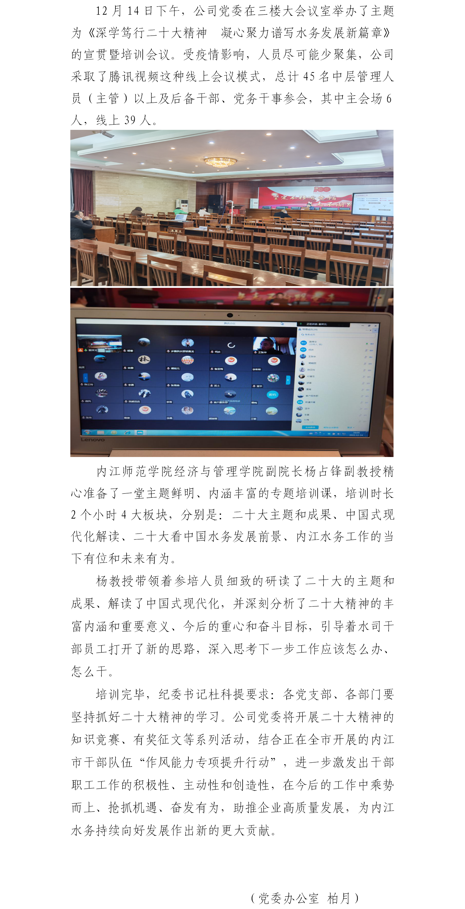 公司黨委舉辦黨的二十大精神宣貫暨干部培訓(xùn)會(huì)