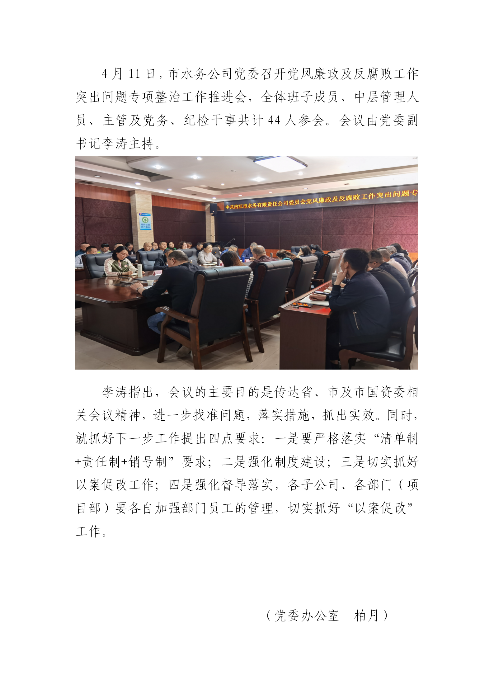 市水務(wù)公司召開黨風(fēng)廉政及反腐敗工作突出問(wèn)題專項(xiàng)整治工作推進(jìn)會(huì)