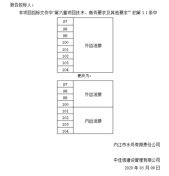 內(nèi)江市水務(wù)有限責(zé)任公司PPR給水管及管件采購項目更正公告