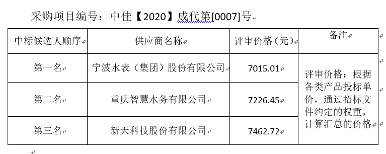 內(nèi)江市水務(wù)有限責(zé)任公司水表采購項目 評標結(jié)果公示