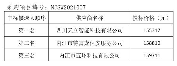 內(nèi)江市污水處理有限責(zé)任公司監(jiān)控系統(tǒng)升級改造項(xiàng)目評標(biāo)結(jié)果公示