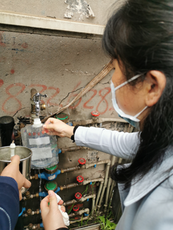 因受疫情影響,學(xué)校供水管網(wǎng)及相關(guān)設(shè)備長時間處于未使用狀態(tài),極易出現(xiàn)水質(zhì)問題。為確保校園用水安全,4月7日至8日,水質(zhì)檢測中心對城區(qū)及鄉(xiāng)鎮(zhèn)的23個中小學(xué)校供水進行取樣檢測,并將數(shù)據(jù)反饋給生產(chǎn)技術(shù)部,為水廠制水適時調(diào)整消毒劑投加量提供科學(xué)指導(dǎo)。