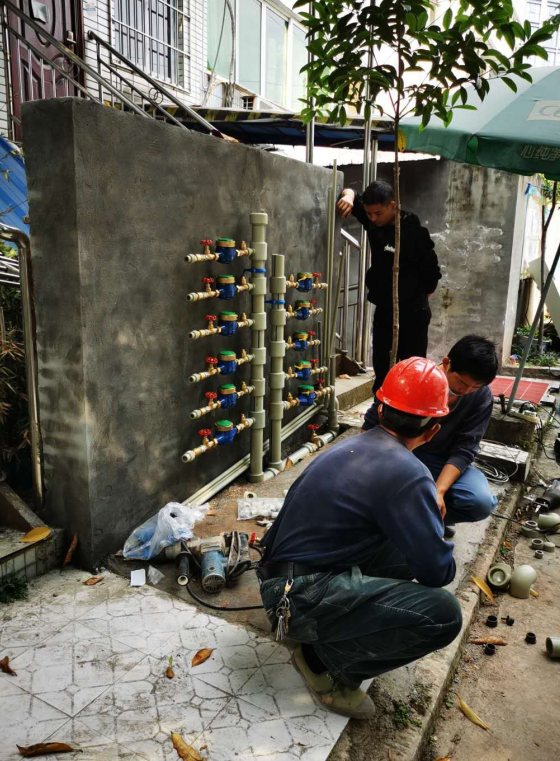 在做好安全防護準備后,歷經(jīng)4天的清淤轉(zhuǎn)移,2天的鉆孔開窗、管溝開挖、新表墻砌筑,2天的集中攻關改管后,將原有表位廢除遷改,在4月30日完成整改工作,確保了“五一”期間經(jīng)營戶的正常營業(yè)用水。