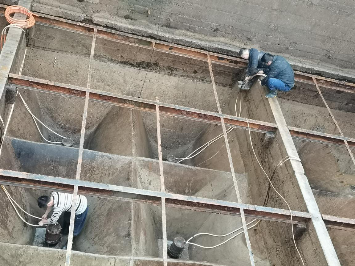 為提高生產(chǎn)運行可靠性,保障安全供水,二水廠結合浮沉池斜板改造工作,同步推進池底閥檢修,既節(jié)約時間又降低生產(chǎn)能耗。在池底閥檢修工作中,我廠維修人員不懼風雨、不畏艱辛,根據(jù)工作需要主動加班加點,用實際行動詮釋水務人保安全供水的決心。