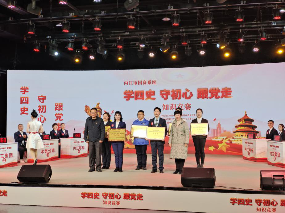 2021年12月28日下午,由中共內(nèi)江市國有資產(chǎn)監(jiān)督管理委員會委員會主辦,中共內(nèi)江建工集團(tuán)有限責(zé)任公司委員會承辦的內(nèi)江市國資系統(tǒng)“學(xué)四史 守初心 跟黨走”知識競賽在內(nèi)江廣播電視臺演播大廳舉行。來自市級各企業(yè)的8支隊(duì)伍24名選手參賽,我司選派的劉梅、袁琳、熊瑞凱3名同志代表參加了此次競賽。