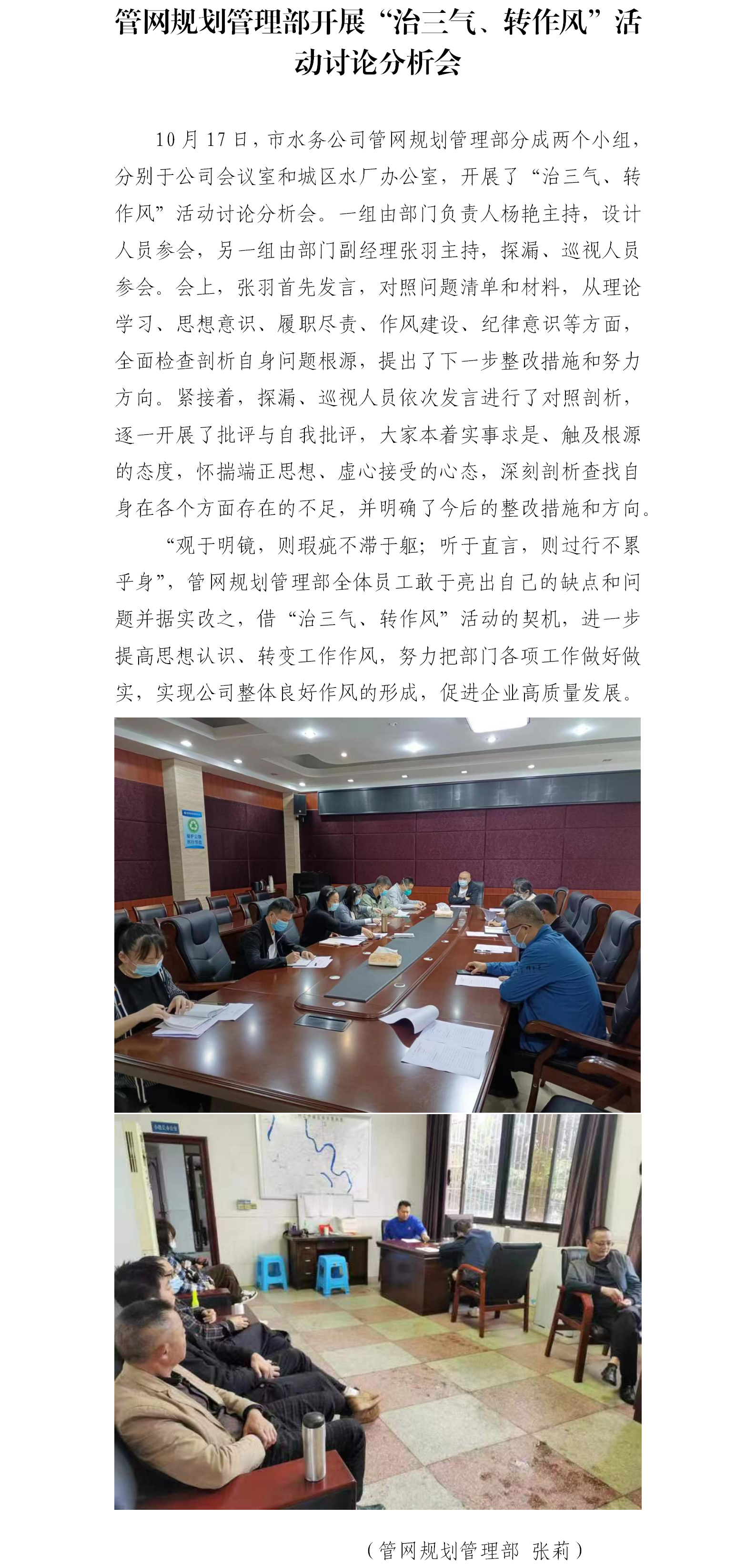 管網(wǎng)規(guī)劃管理部開展“治三氣、轉(zhuǎn)作風”活動討論分析會