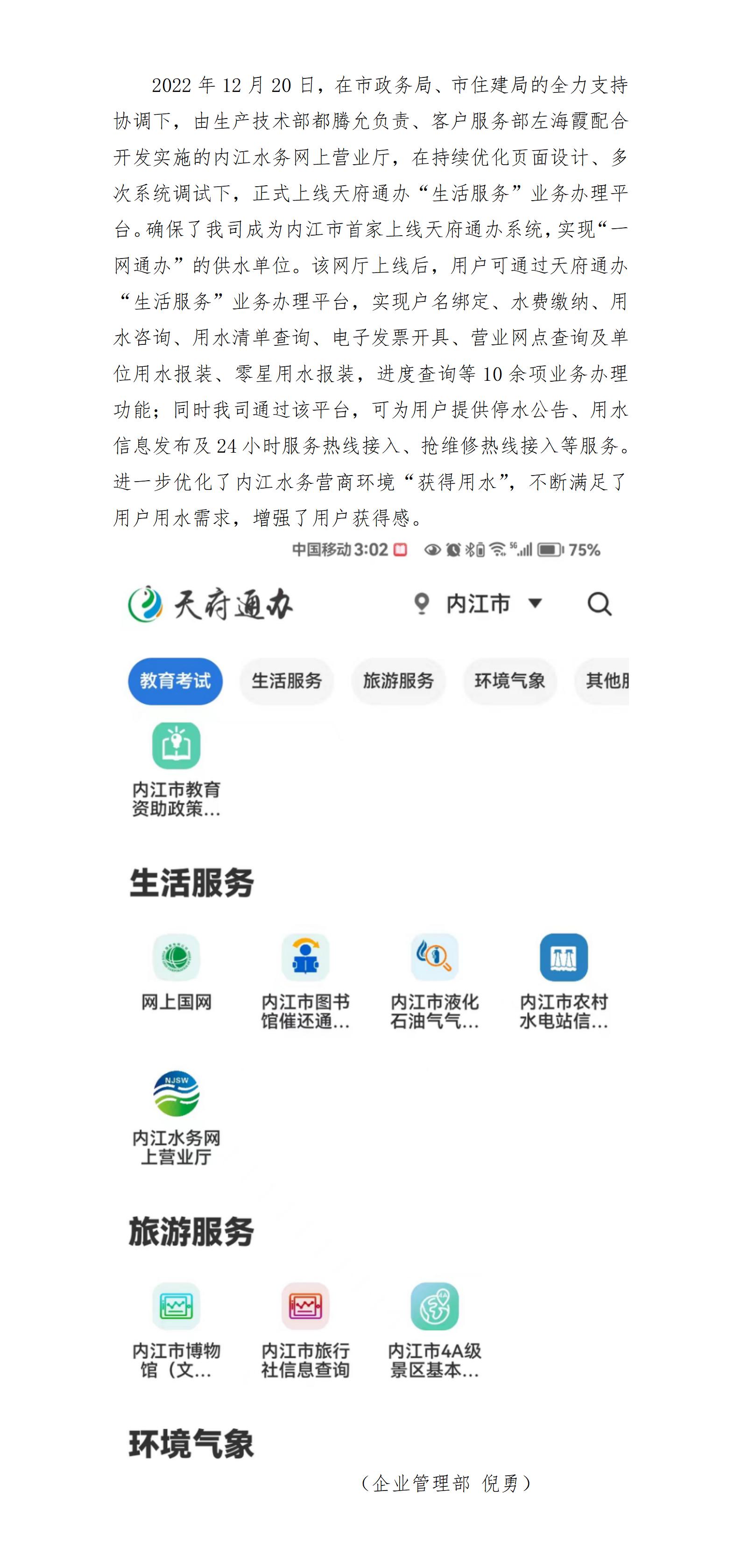 “讓數(shù)據(jù)多跑路,用戶少跑路” 內(nèi)江水務(wù)網(wǎng)上營業(yè)廳正式上線天府通辦平臺
