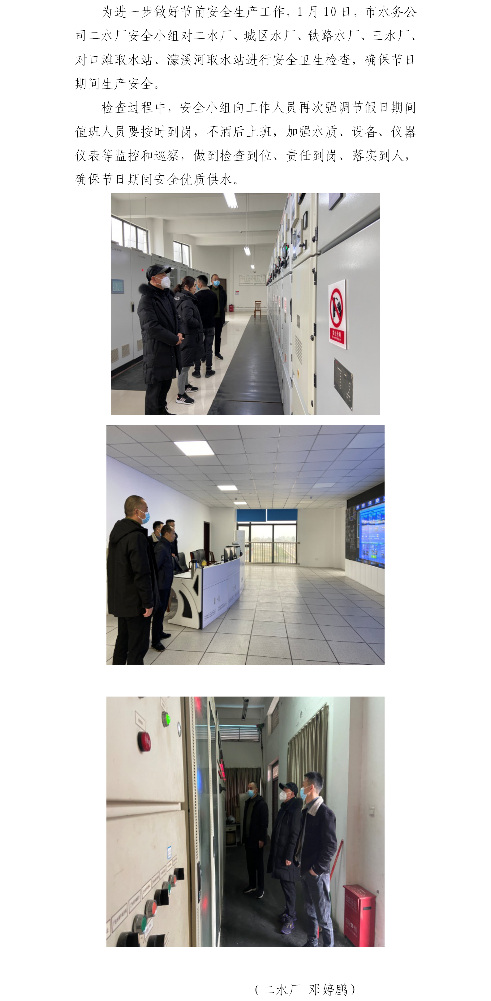 市水務(wù)公司二水廠開(kāi)展節(jié)前安全生產(chǎn)檢查