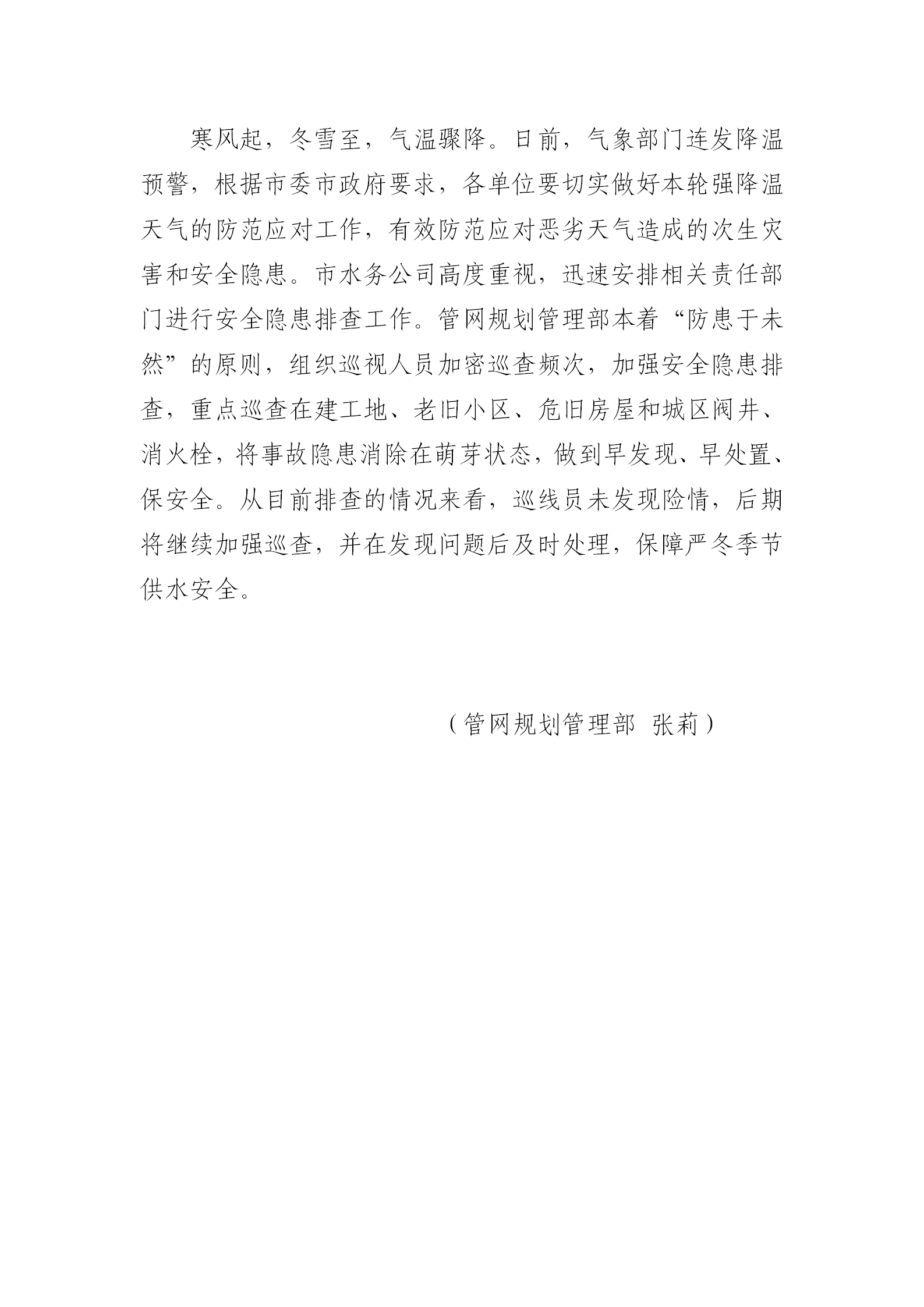 寒潮來(lái)臨 保供水安全