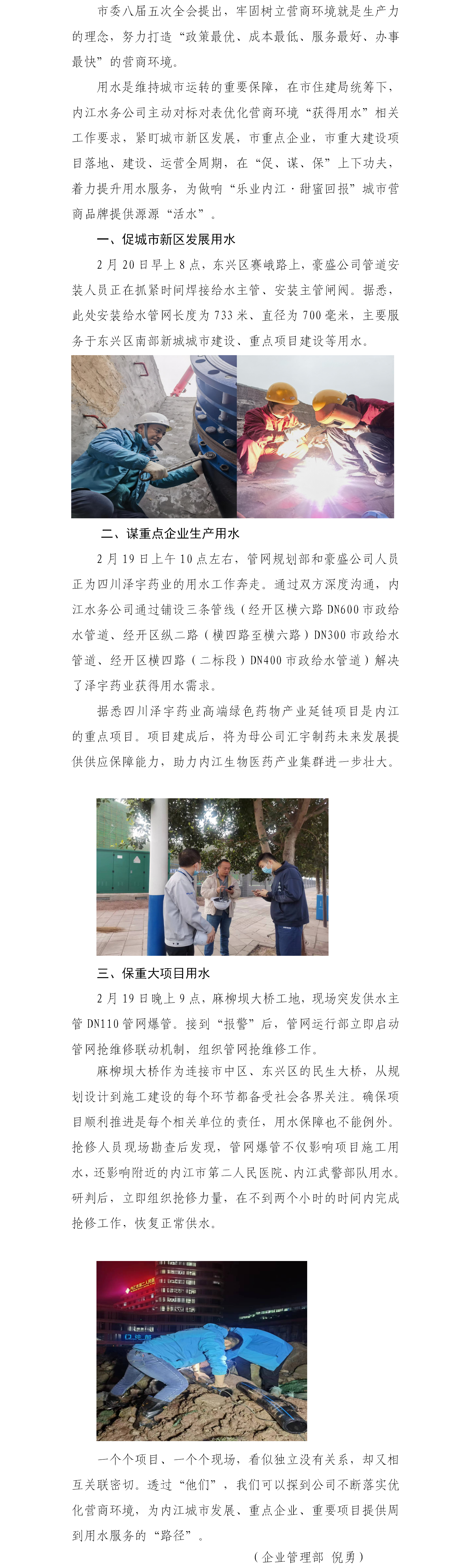 內(nèi)江水務(wù)優(yōu)化營(yíng)商環(huán)境護(hù)航城市發(fā)展、重點(diǎn)企業(yè)、重大項(xiàng)目獲得用水