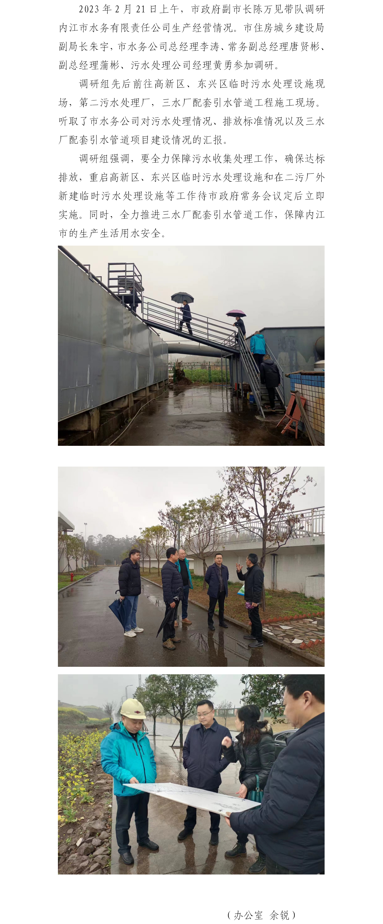 市政府領導現(xiàn)場調研內江市水務有限責任公司生產經營情況