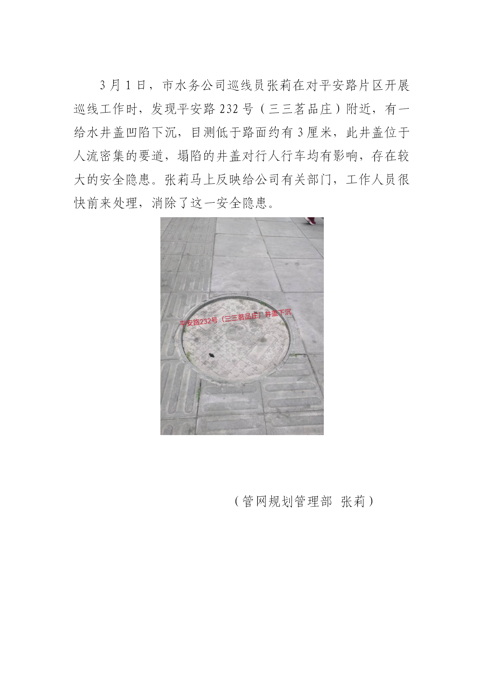 巡線發(fā)現(xiàn)井蓋下沉安全隱患