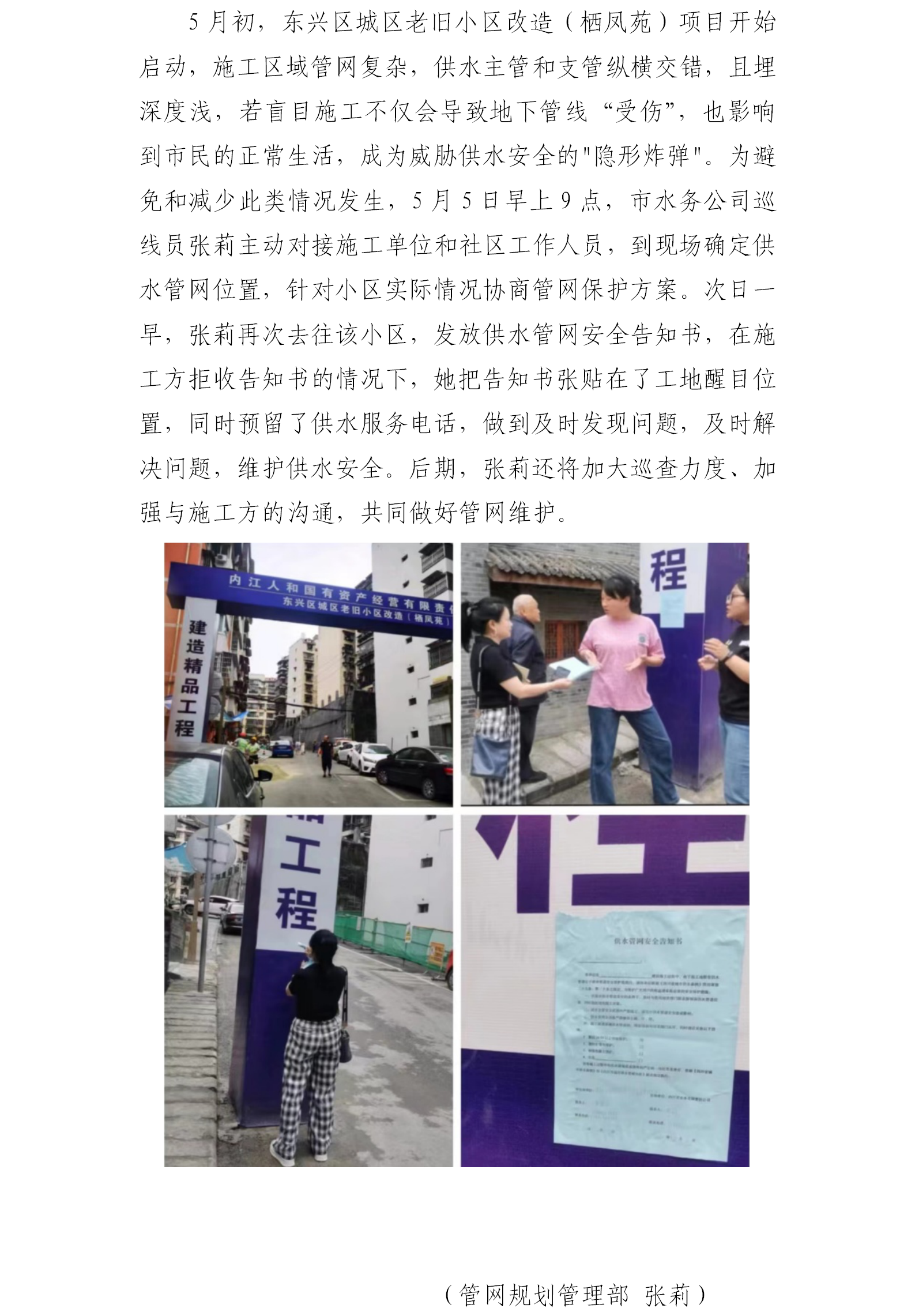 張貼安全告知書(shū) 共同做好管網(wǎng)維護(hù)