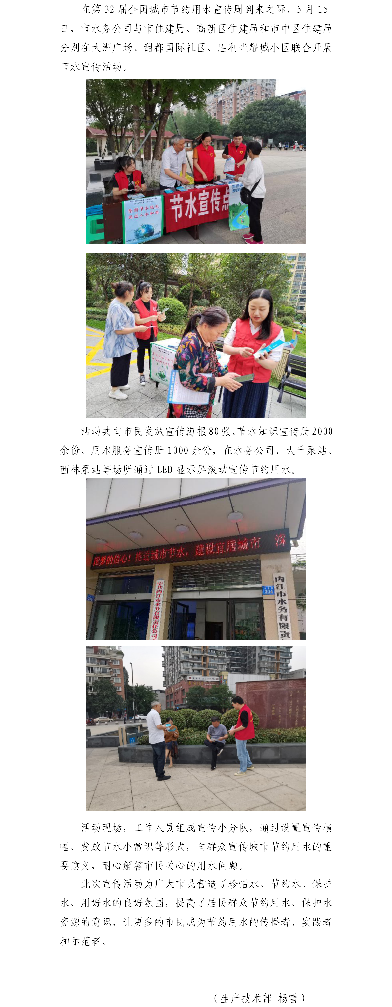 市水務(wù)公司開(kāi)展全國(guó)城市節(jié)水宣傳周活動(dòng)