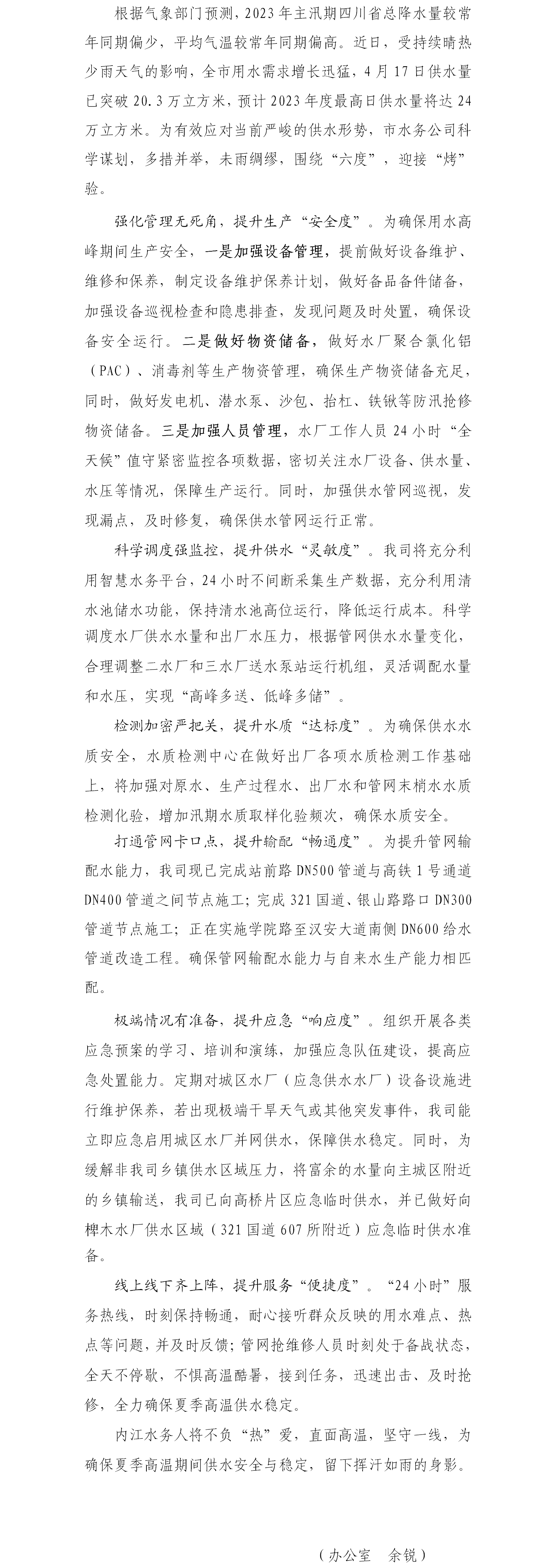 未雨綢繆保供水,無懼炙烤迎酷暑