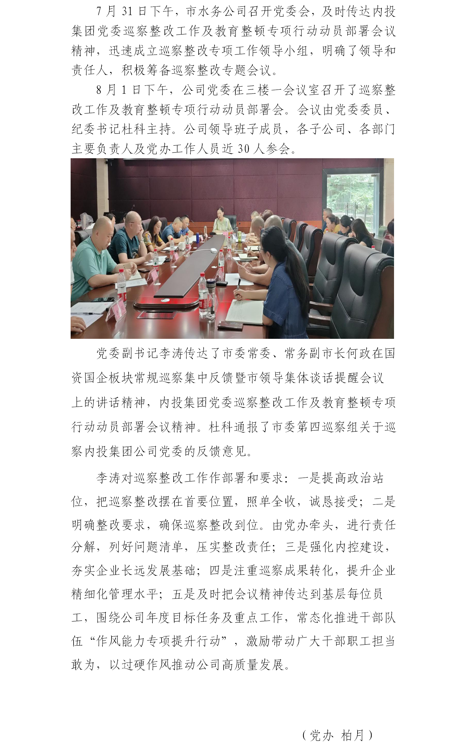 內(nèi)江市水務(wù)有限責(zé)任公司黨委召開巡察整改工作暨教育整頓專項(xiàng)行動(dòng)動(dòng)員部署會(huì)