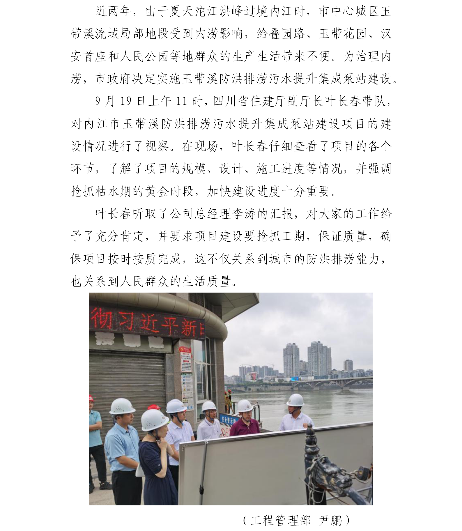 省住建廳副廳長(zhǎng)葉長(zhǎng)春視察玉帶溪泵站項(xiàng)目建設(shè)情況