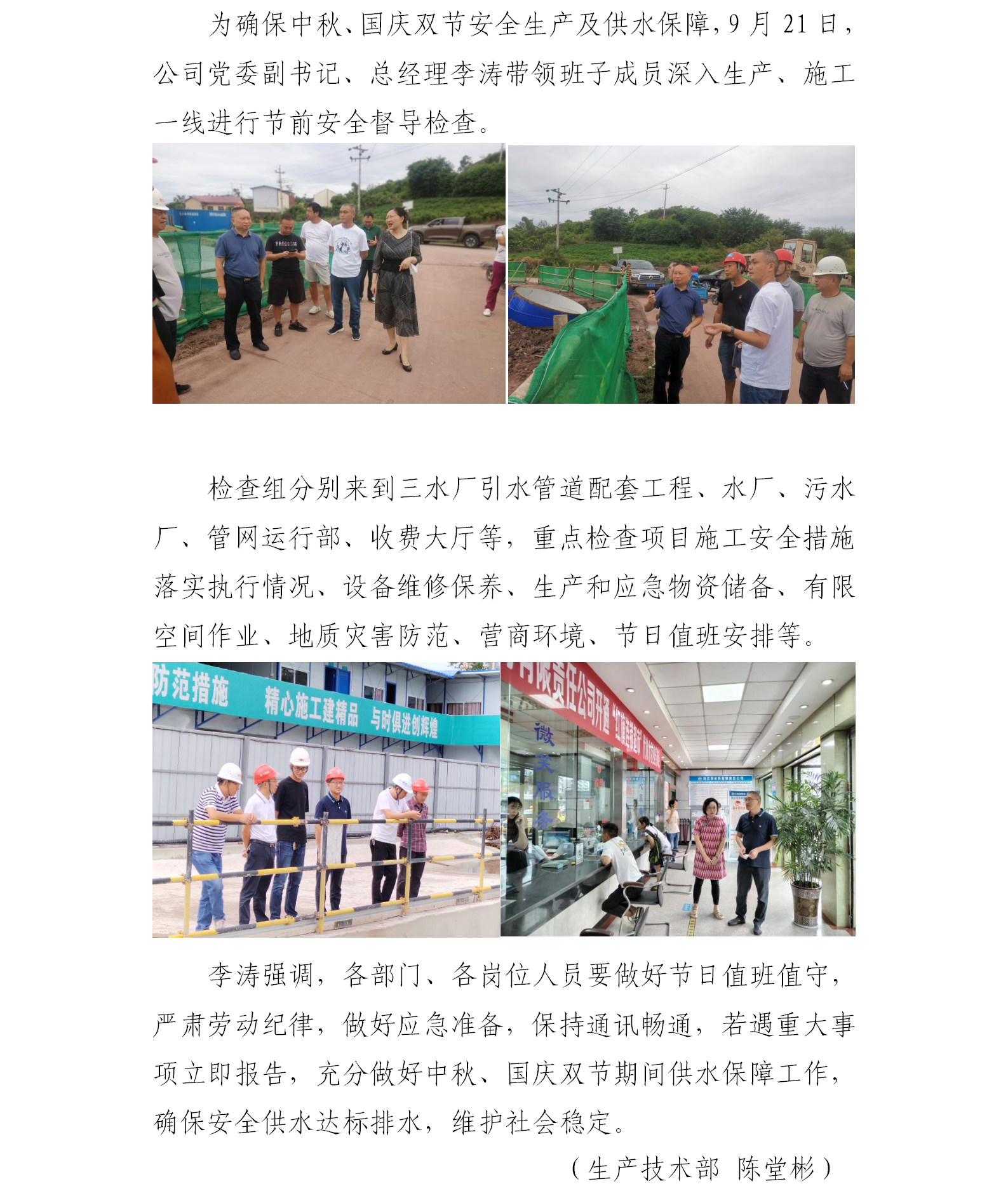 歡度國慶佳節(jié) 確保安全供水 ——公司組織中秋、國慶節(jié)安全檢查