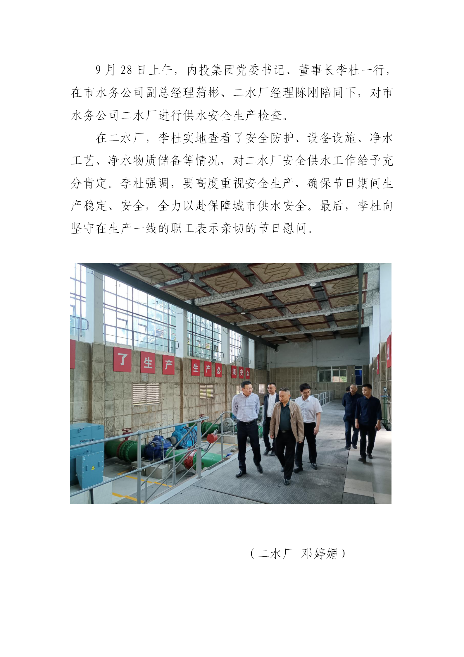 內(nèi)投集團(tuán)領(lǐng)導(dǎo)到二水廠檢查安全工作