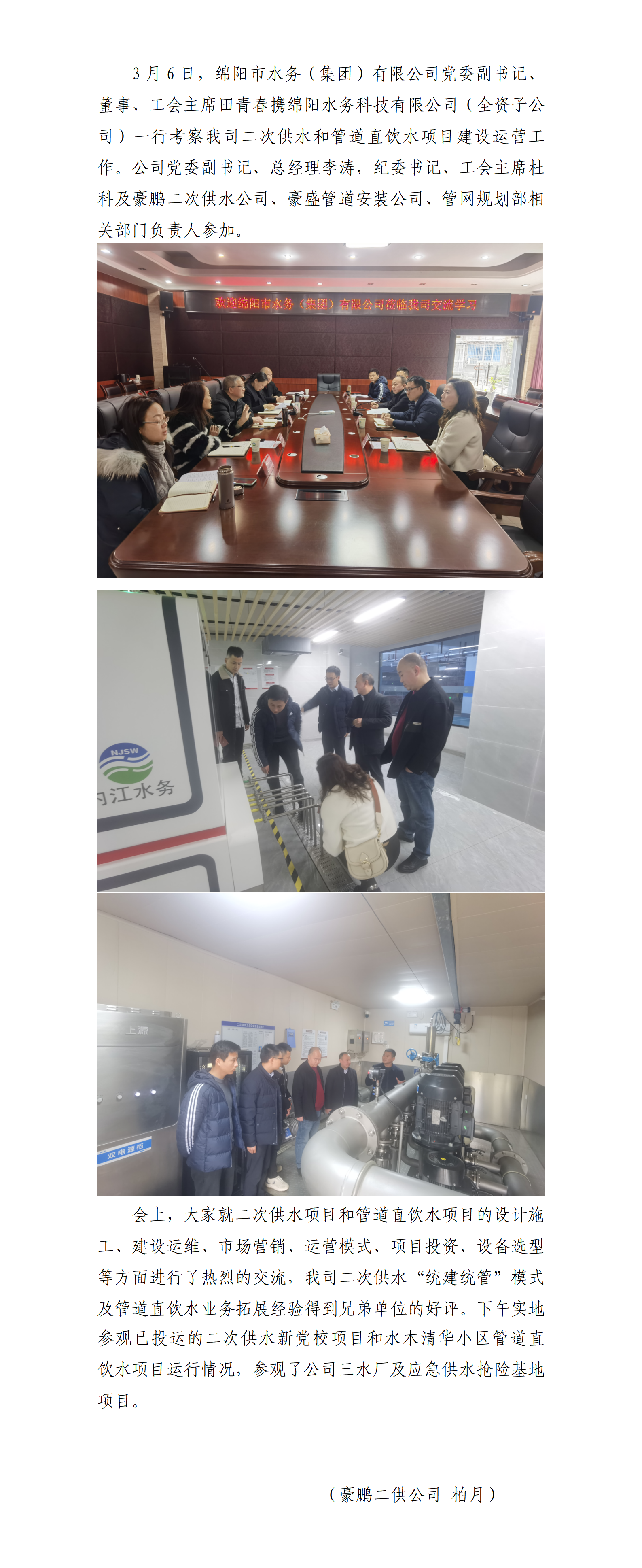 綿陽市水務(wù)(集團(tuán))公司考察我司二次供水和管道直飲水運(yùn)營(yíng)工作