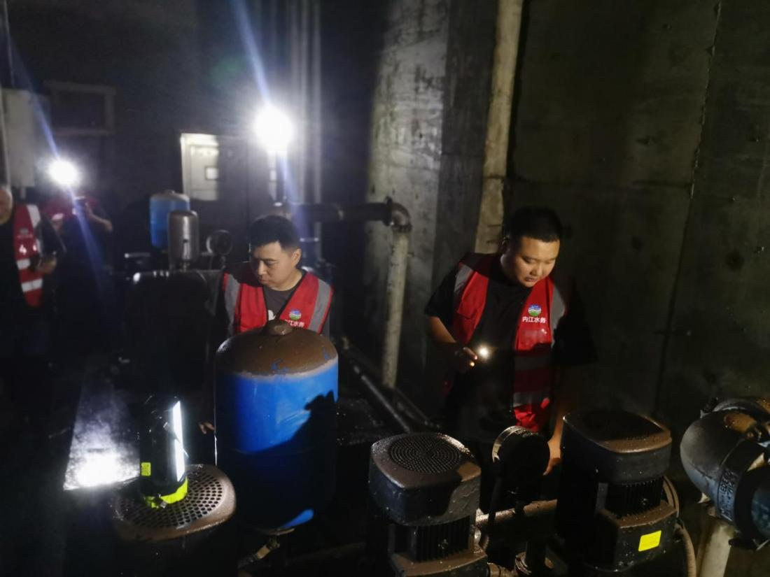 7月15日,內(nèi)江市水務(wù)有限責(zé)任公司(以下簡稱市水務(wù)公司)子公司豪鵬二次供水服務(wù)有限責(zé)任公司(以下簡稱豪鵬公司)接到該小區(qū)物業(yè)求助后,立即組織二次供水技術(shù)人員前往現(xiàn)場查看受災(zāi)情況。技術(shù)人員在對(duì)二次供水設(shè)施受損情況進(jìn)行評(píng)估后,向物業(yè)公司及社區(qū)管理人員提出二次供水設(shè)施維修指導(dǎo)意見,并幫助小區(qū)物業(yè)制定應(yīng)急供水搶險(xiǎn)及設(shè)備搶修方案,確保第一時(shí)間恢復(fù)居民供水。同時(shí),豪鵬公司立即聯(lián)動(dòng)市水務(wù)公司客戶服務(wù)部,在受災(zāi)小區(qū)內(nèi)設(shè)置了臨時(shí)取水點(diǎn),以緩解居民用水困難。
