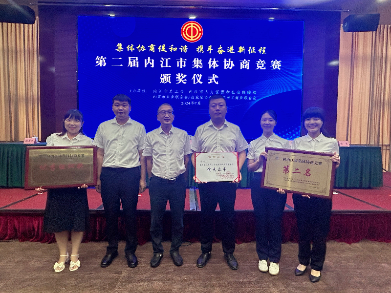 7月25日,由市總工會、市人社局、市企業(yè)家聯(lián)合會、市工商聯(lián)聯(lián)合舉辦的“集體協(xié)商促和諧 攜手奮進新征程”第二屆內(nèi)江市集體協(xié)商競賽圓滿落幕。市水務(wù)公司代表隊經(jīng)過初賽、復(fù)賽和決賽三輪比拼,在12支隊伍的激烈角逐中脫穎而出,最終榮獲第二名。