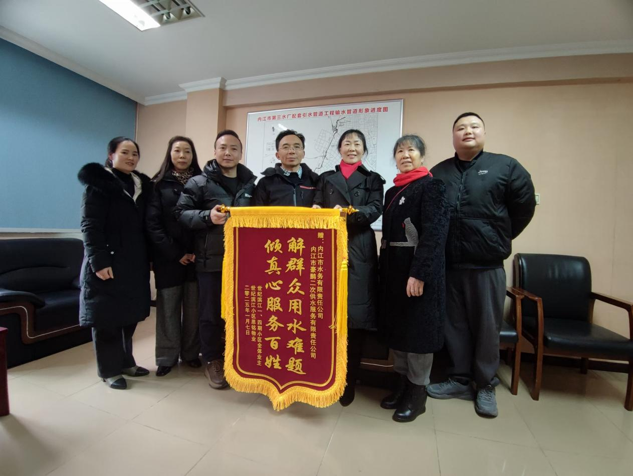 豪鵬二供公司黨支部積極踐行便民舉措、主動作為的舉動,贏得了世紀濱江業(yè)委會及物業(yè)的高度認可,并送錦旗向豪鵬二供公司表達誠摯的感謝與敬意。