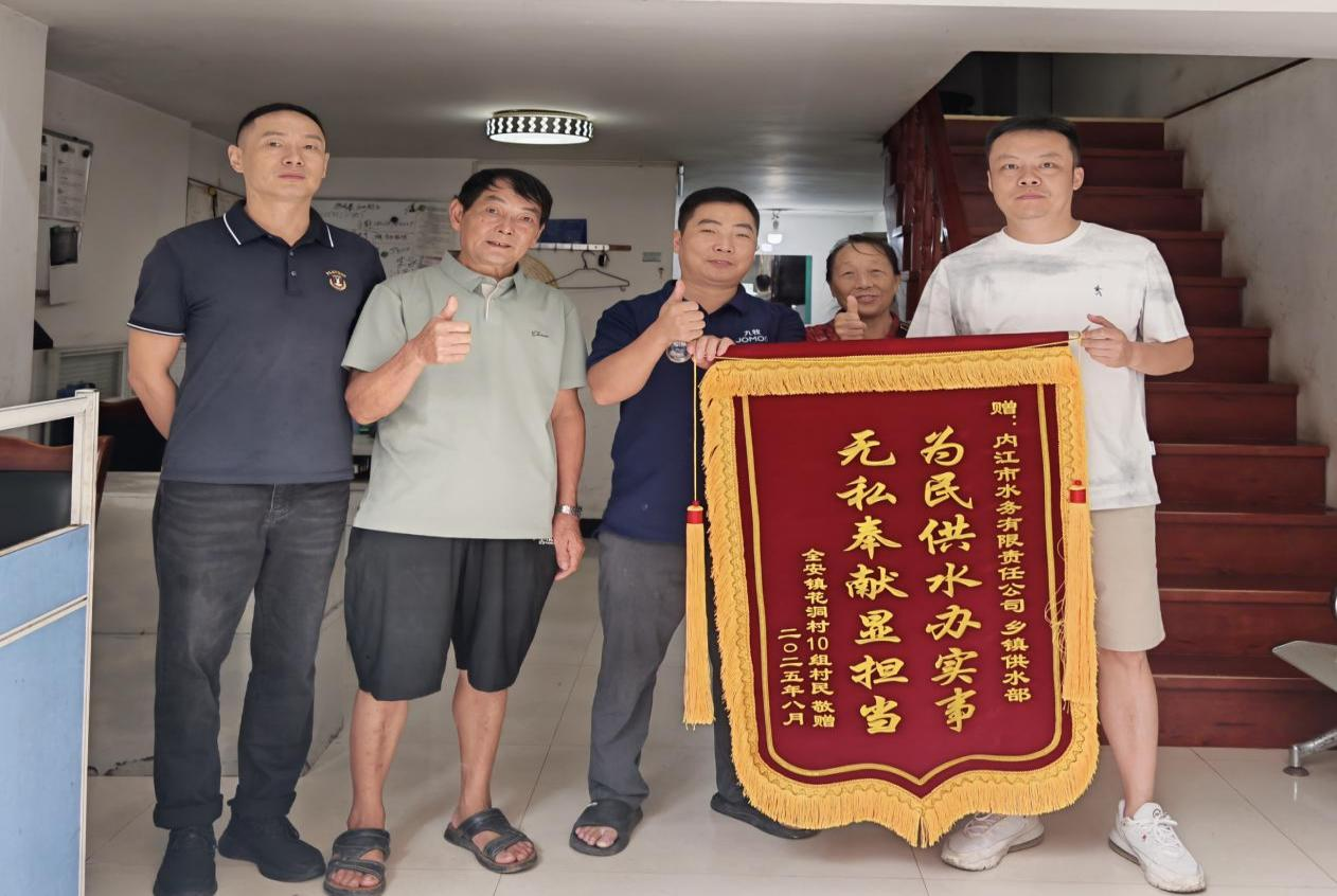 8月25日,花洞村五組村民代表將一面印有“為民供水辦實(shí)事 無私奉獻(xiàn)顯擔(dān)當(dāng)”的錦旗贈(zèng)予鄉(xiāng)鎮(zhèn)供水部,以此表達(dá)對(duì)部門高效、貼心服務(wù)的由衷感激。