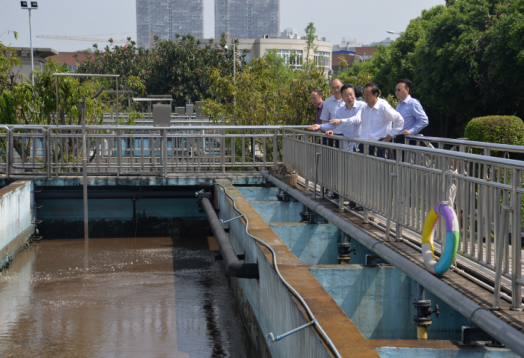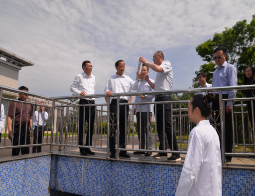 2017年5月4日,內(nèi)江市委書(shū)記馬波率市級(jí)相關(guān)領(lǐng)導(dǎo)就沱江河河長(zhǎng)制管理工作情況視察了市污水處理廠公司領(lǐng)導(dǎo)寧印福,林冬李濤陪同視察。