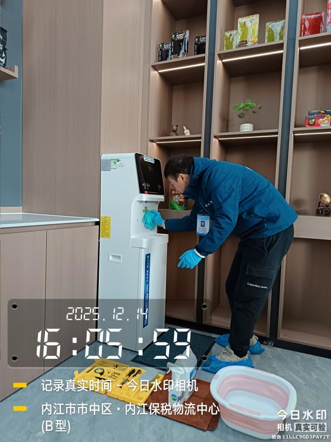 服務(wù)過(guò)程中,工作人員嚴(yán)格遵循標(biāo)準(zhǔn)化流程,安全拆卸舊濾芯并規(guī)范安裝新濾芯,確保設(shè)備運(yùn)行穩(wěn)定。隨后,對(duì)新濾芯外殼及直飲機(jī)機(jī)身、按鍵、出水口等高頻接觸部位進(jìn)行全面清潔與消毒,杜絕二次污染,筑牢衛(wèi)生安全防線。此外,工作人員主動(dòng)與用戶進(jìn)行面對(duì)面交流,詳細(xì)介紹日常使用規(guī)范與注意事項(xiàng),收集用水需求并耐心解答水質(zhì)與設(shè)備使用相關(guān)問(wèn)題,從而實(shí)現(xiàn)服務(wù)閉環(huán)。