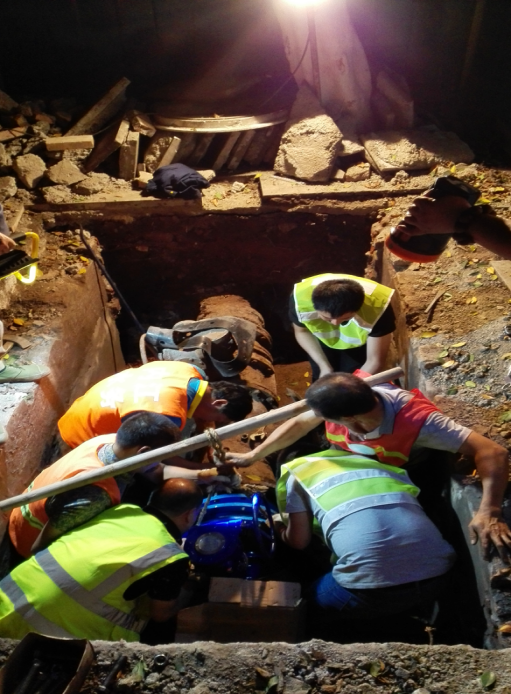 在管網(wǎng)規(guī)劃管理部、物資供應(yīng)部、豪盛管道安裝公司及工會(huì)等部門的緊密配合下,5月17日晚22時(shí),管網(wǎng)運(yùn)行部按改造實(shí)施方案對(duì)平安路兩側(cè)3臺(tái)蝶閥進(jìn)行了更換。為縮短停水時(shí)間,施工前管網(wǎng)運(yùn)行部組織召開了兩次施工分析會(huì),制定了工作方案,并對(duì)施工現(xiàn)場提前組織開挖,設(shè)置安全圍擋、照明等安全設(shè)施,為順利實(shí)施蝶閥更換做好充分準(zhǔn)備。施工中,維修人員們克服深夜疲勞、操作場地狹小等不利因素,特別是楊孝成,鄧軼峰、劉超、程建軍等冒著高溫天氣及氧焊的熱浪,在弱電管線交錯(cuò)縱橫的狹窄空間里拆卸生銹螺栓,安裝更新蝶閥。經(jīng)過7個(gè)多小時(shí)連續(xù)作業(yè),在18日凌晨5時(shí)順利完成此次改造工作,比預(yù)期通水時(shí)間提前1個(gè)小時(shí),保證了周邊用戶正常用水。