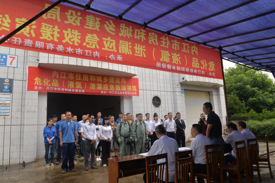 2017年6月16日上午,做好?;钒踩芾砉ぷ?,保安全供水公司在二水廠成功進行液氯泄漏應(yīng)急救援演練。本次演練,由市住建局主辦、公司承辦,公司黨委書記、董事長、總經(jīng)理寧印福任總指揮,總工程師蒲彬任現(xiàn)場總指揮,生產(chǎn)技術(shù)部組織,二水廠具體實施,共計 50多人參與演練。