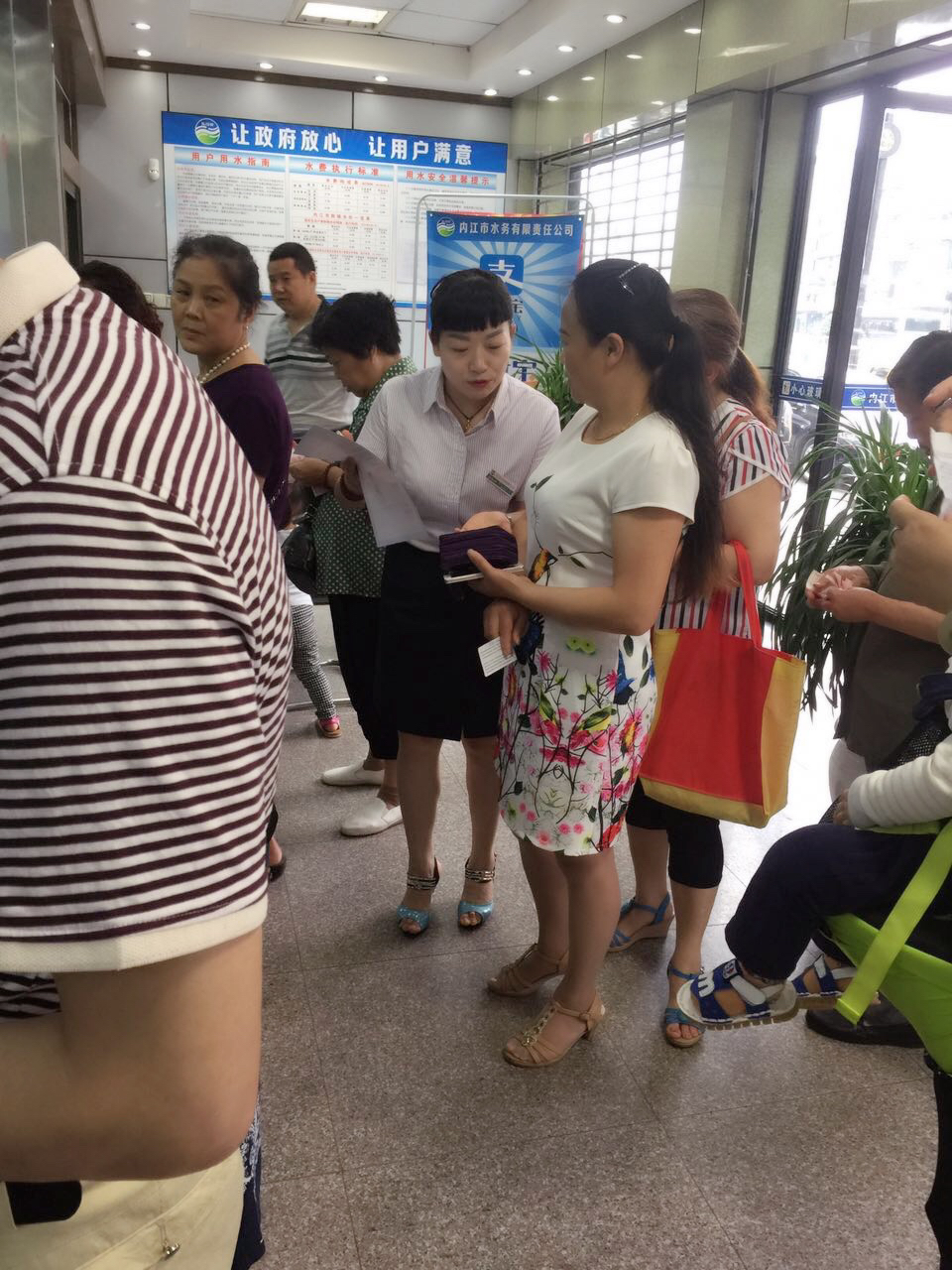 為宣傳推廣公司代收水費(fèi)業(yè)務(wù),公司客戶服務(wù)部組織賬務(wù)組的工作人員在收費(fèi)高峰期到每個(gè)收費(fèi)室進(jìn)行代收費(fèi)業(yè)務(wù)的宣傳。工作人員手拿宣傳單走進(jìn)繳費(fèi)人群中,熱情仔細(xì)給用戶講解水費(fèi)代收費(fèi)業(yè)務(wù),并用手機(jī)手把手教用戶怎么使用翼支付和支付寶手機(jī)繳費(fèi)。通過(guò)幫助用戶學(xué)習(xí)掌握手機(jī)繳費(fèi),免去用戶在酷暑和寒冬排隊(duì)繳費(fèi)的煩勞。