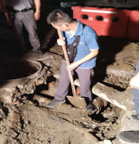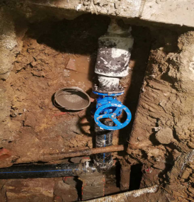 2017年6月8日晚,管網(wǎng)運行部接到群眾電話,反映工商街大面積停水。經(jīng)搶維修人員到現(xiàn)場排查,發(fā)現(xiàn)供水管道井內(nèi)DN200鑄鐵管被污水嚴(yán)重銹蝕,導(dǎo)致供水主管破裂,造成了工商街沿線大面積停水。由于天氣悶熱,加上工商街又是商鋪和居民密集地,管網(wǎng)運行部決定冒雨連夜搶修,同時派送水車給附近居民送水。經(jīng)過7個多小時連續(xù)作業(yè),在6月9日凌晨1:30分完成搶修,凌晨6:30分恢復(fù)供水,保證了周邊用戶正常用水。