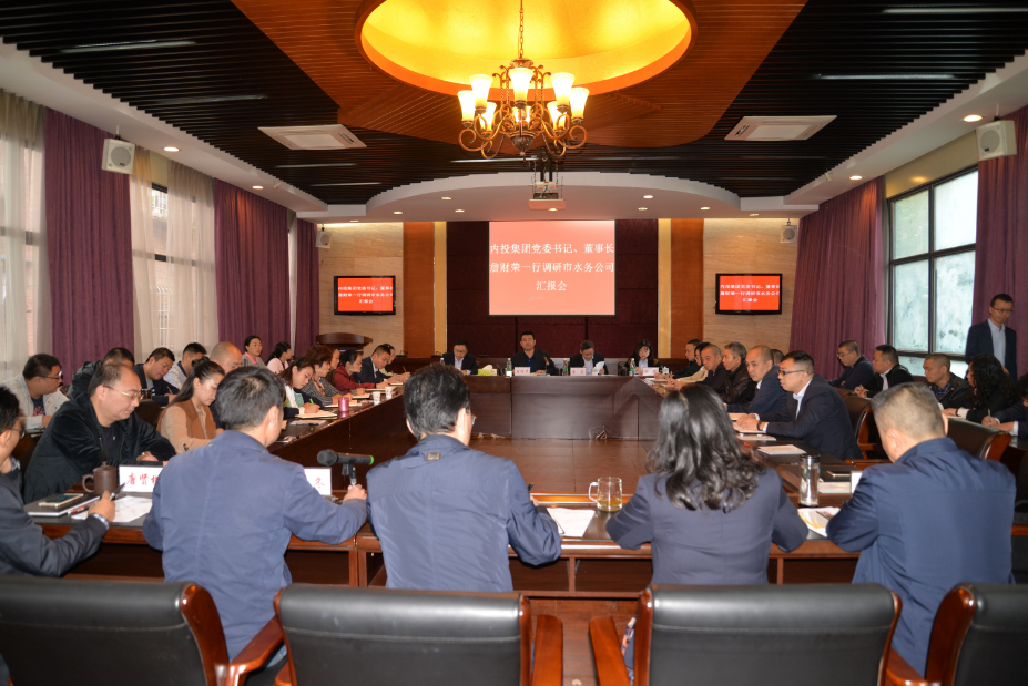 10月16日上午,內投集團黨委書記、董事長詹財榮率隊調研市水務公司。公司領導班子成員、中層管理人員近30人參會。會議由副總經(jīng)理林冬主持。