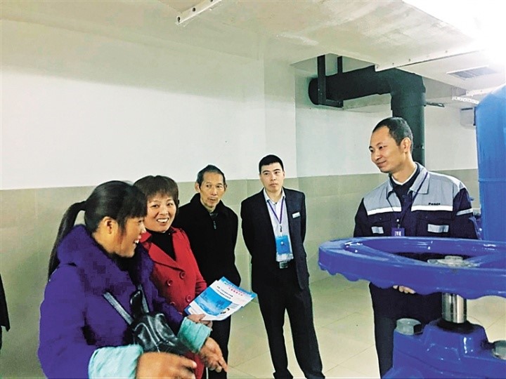 當(dāng)天上午9時許,隨著10余名業(yè)主代表準(zhǔn)時出現(xiàn)在萬晟城峰景小區(qū)二次供水泵房處,活動正式拉開序幕。面向居民,市水務(wù)公司全資國有子公司——內(nèi)江市豪鵬二次供水服務(wù)有限責(zé)任公司以及上海熊貓機(jī)械集團(tuán)公司工作人員向大家介紹了二次供水設(shè)施建設(shè)、加壓設(shè)備運(yùn)行方式、水質(zhì)檢測、設(shè)備維護(hù)管理等方面的知識。