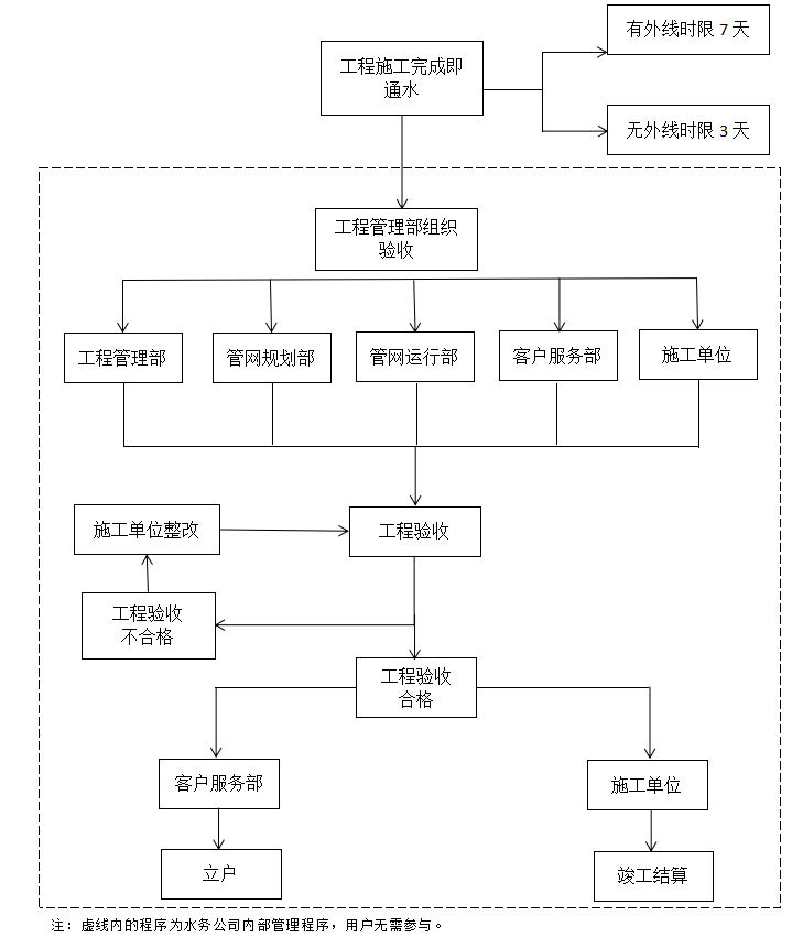 內(nèi)江市水務(wù)有限責(zé)任公司給水工程驗(yàn)收流程示意圖
