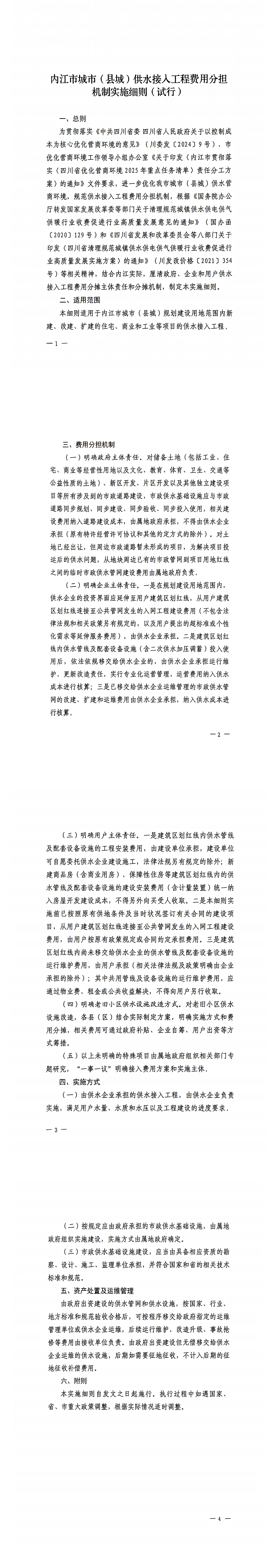 內(nèi)江市城市(縣城)供水接入工程費(fèi)用分擔(dān)機(jī)制實(shí)施細(xì)則(試行)